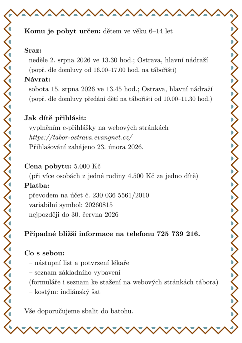 Letošní tábor bude se konat v termínu:2-15.8.2026.